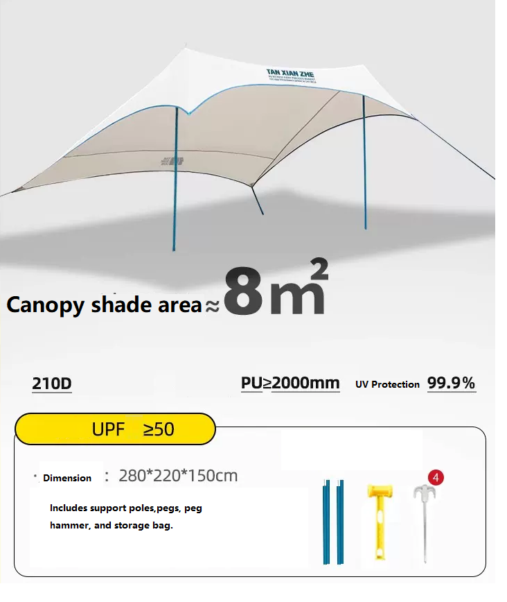 Enjoy effortless outdoor shelter with this ultra-lightweight canopy tent, designed for picnics, beach outings, camping, and casual outdoor use. Its silver-coated fabric provides reliable sun protection while maintaining good airflow and portability.