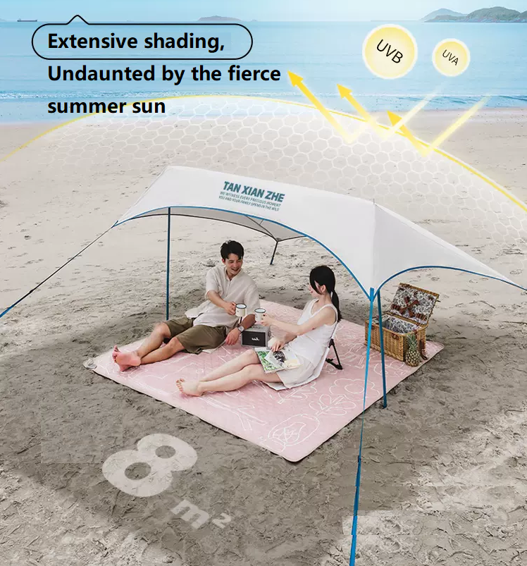 Mechanical structure allows fast and simple setup, ideal for users looking for a hassle-free camping or picnic shade solution.
