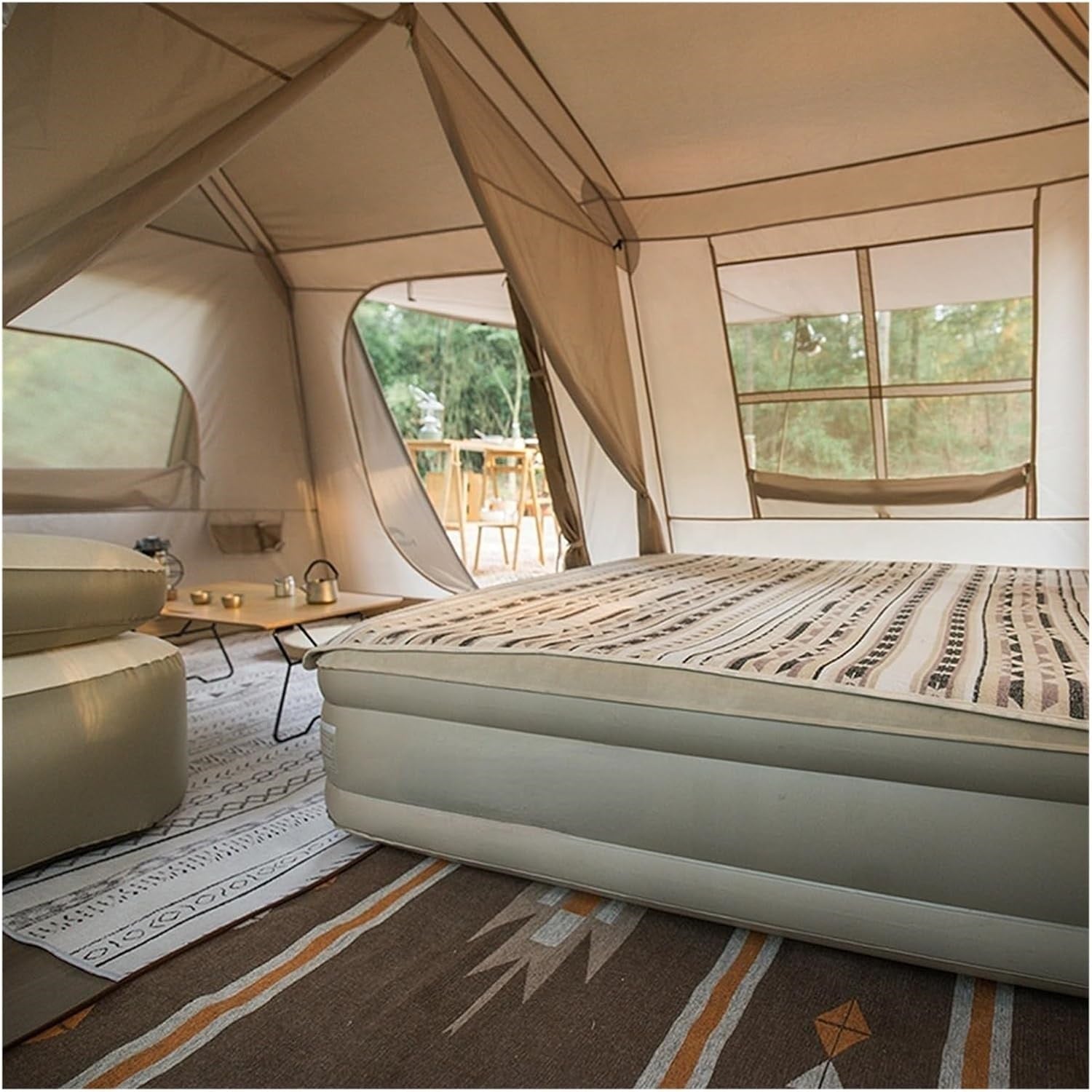 ✔ Two-Room Layout for Family Comfort Spacious interior suitable for multiple sleeping mats or airbeds. Separate living and sleeping areas improve privacy and organisation. Large doors and mesh windows provide airflow while keeping insects out.