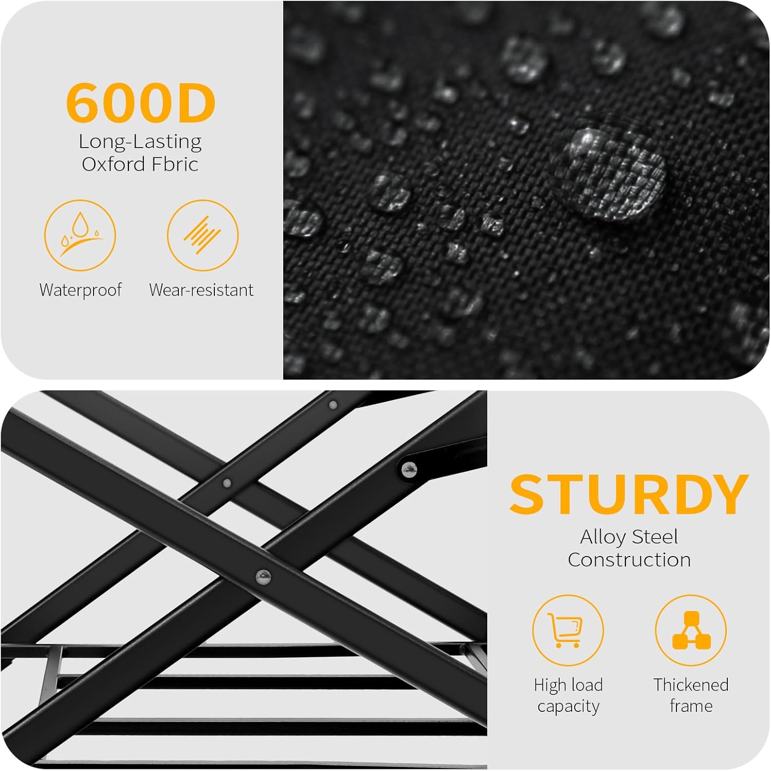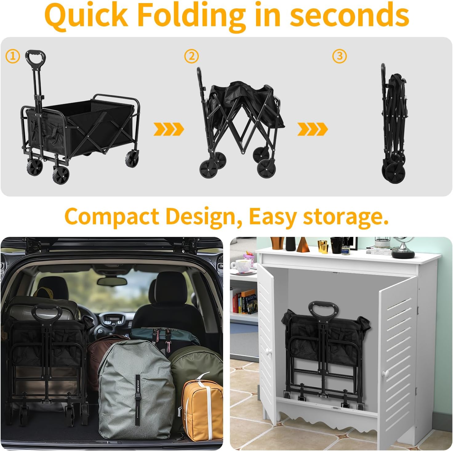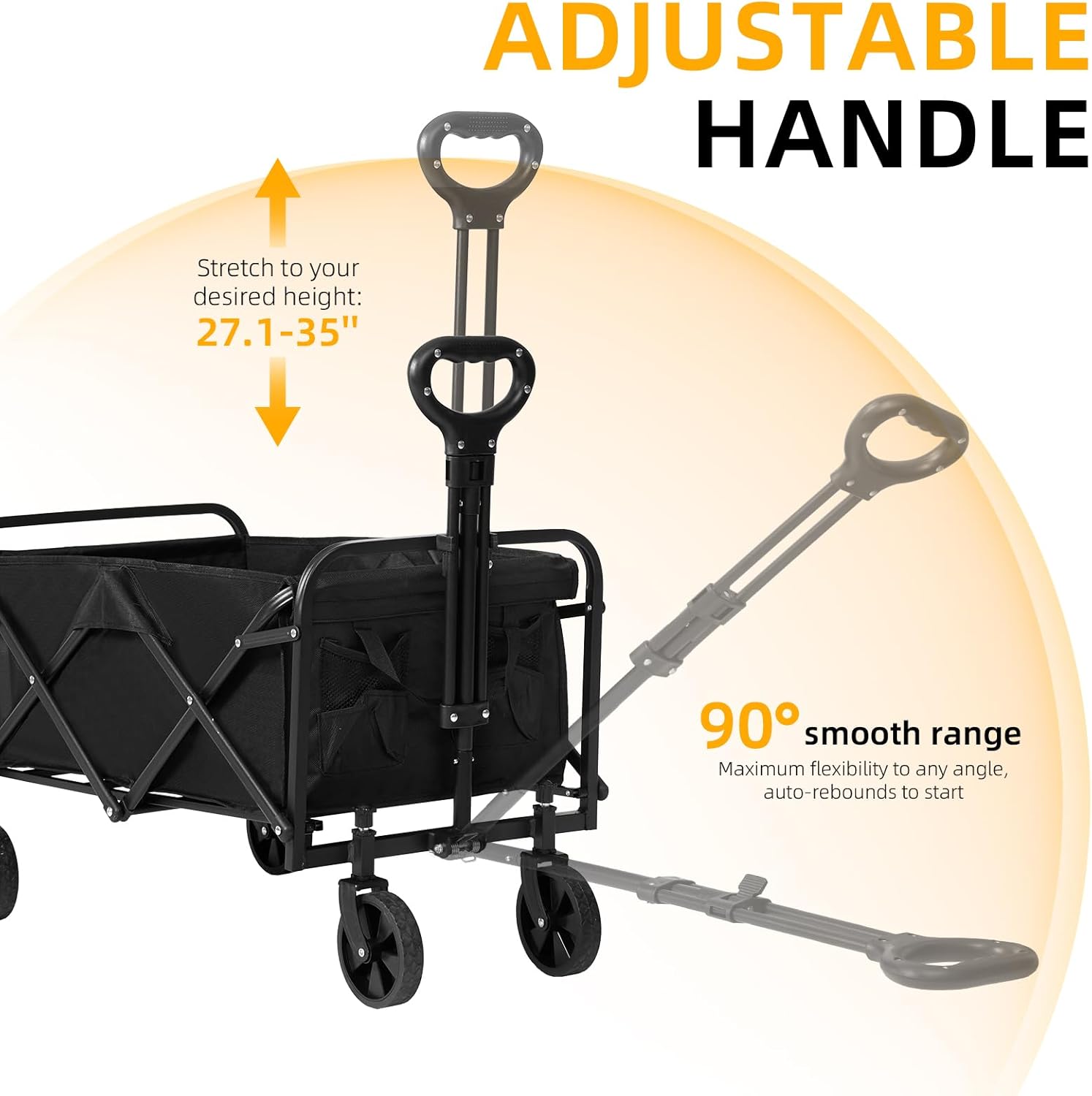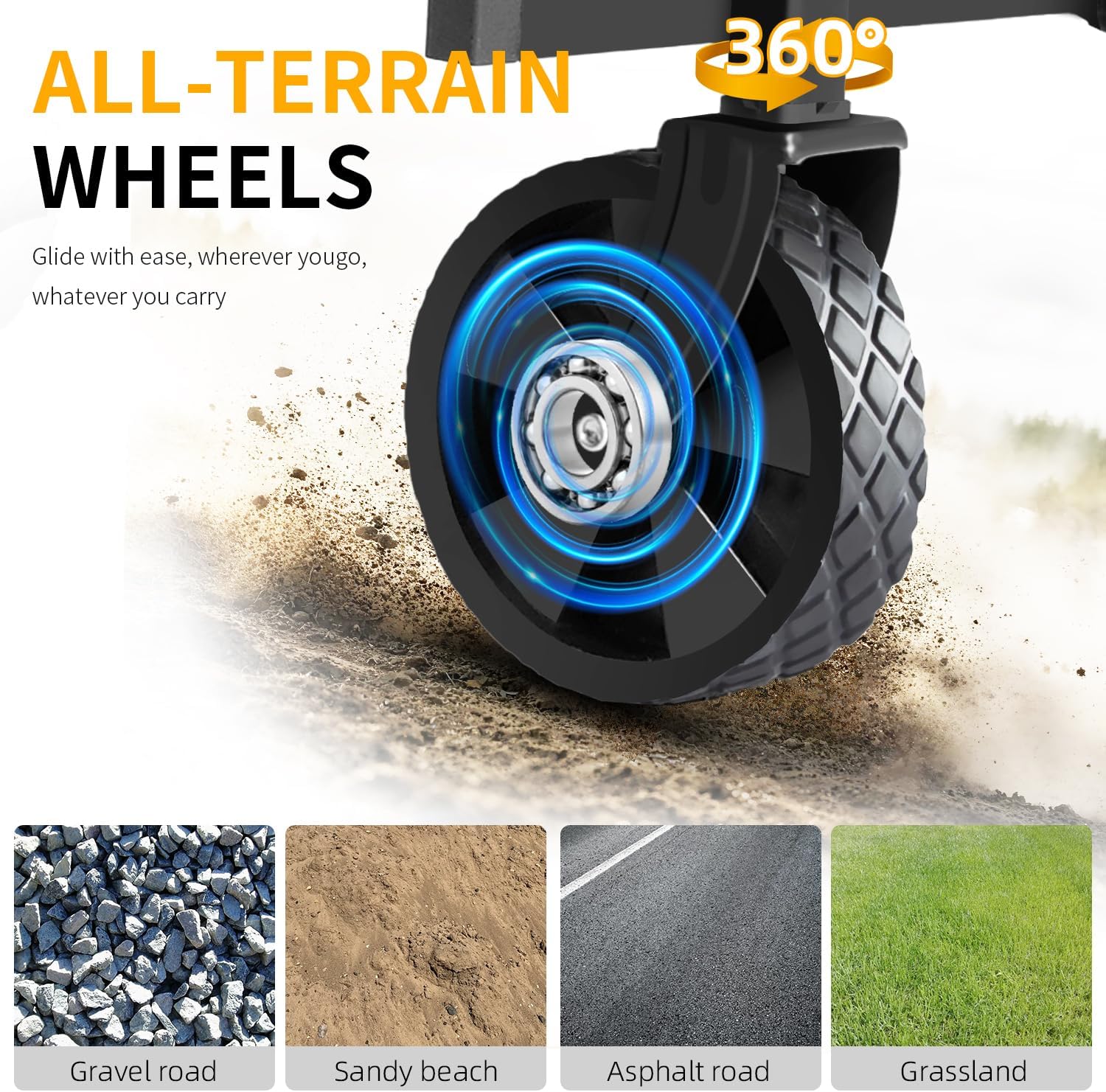 Made from 600D fabric with PVC coating, the wagon is waterproof, tear-resistant, and easy to clean. The thickened all-steel frame features an anti-oxidation, corrosion-resistant finish, making it suitable for long-term outdoor use.