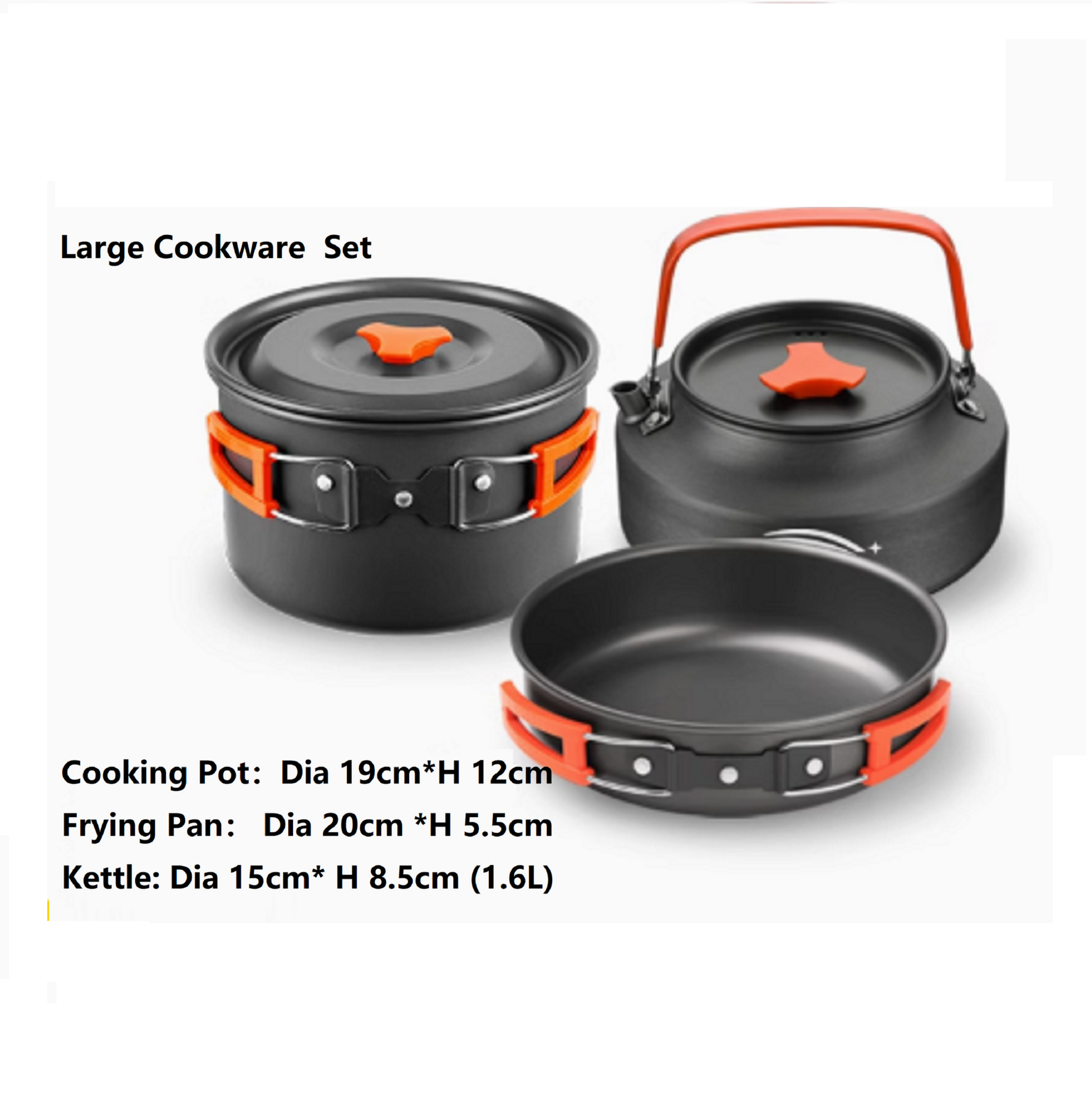 This practical cookware set includes a cooking pot, frying pan, and tea kettle, allowing you to prepare a wide variety of meals outdoors. From boiling water for tea to frying food or cooking stews, this set delivers reliable performance for group use.