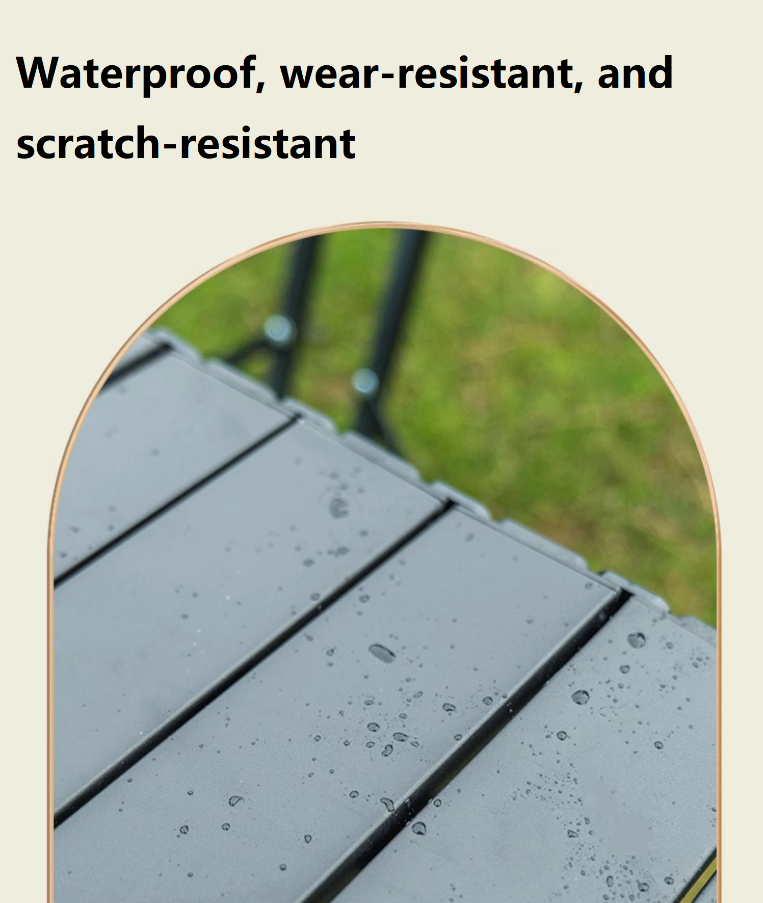The tabletop surface is waterproof, wear-resistant and scratch-resistant, ensuring long-lasting performance and easy maintenance. A matte baking paint finish is applied to the entire table, enhancing both its appearance and resistance to outdoor conditions.