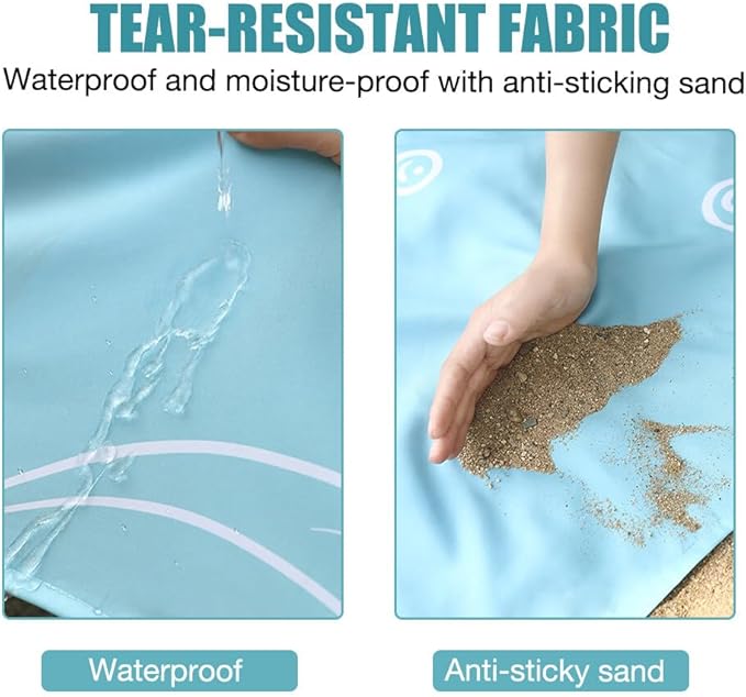 Made from 210T wrinkle-resistant polyester, the mat is skin-friendly, waterproof, sandproof, quick-drying, tear-resistant, and built to last. Sand shakes off easily, keeping your bag and car clean.